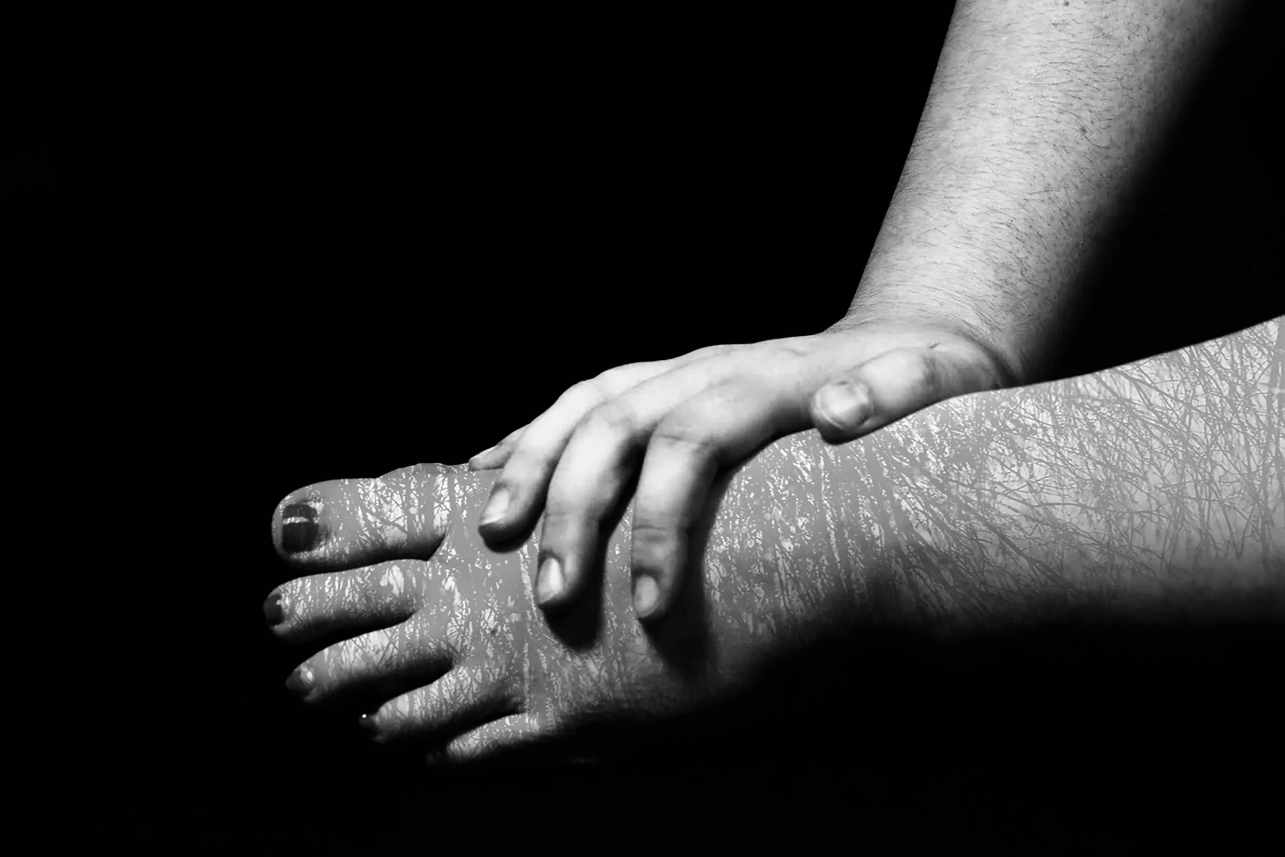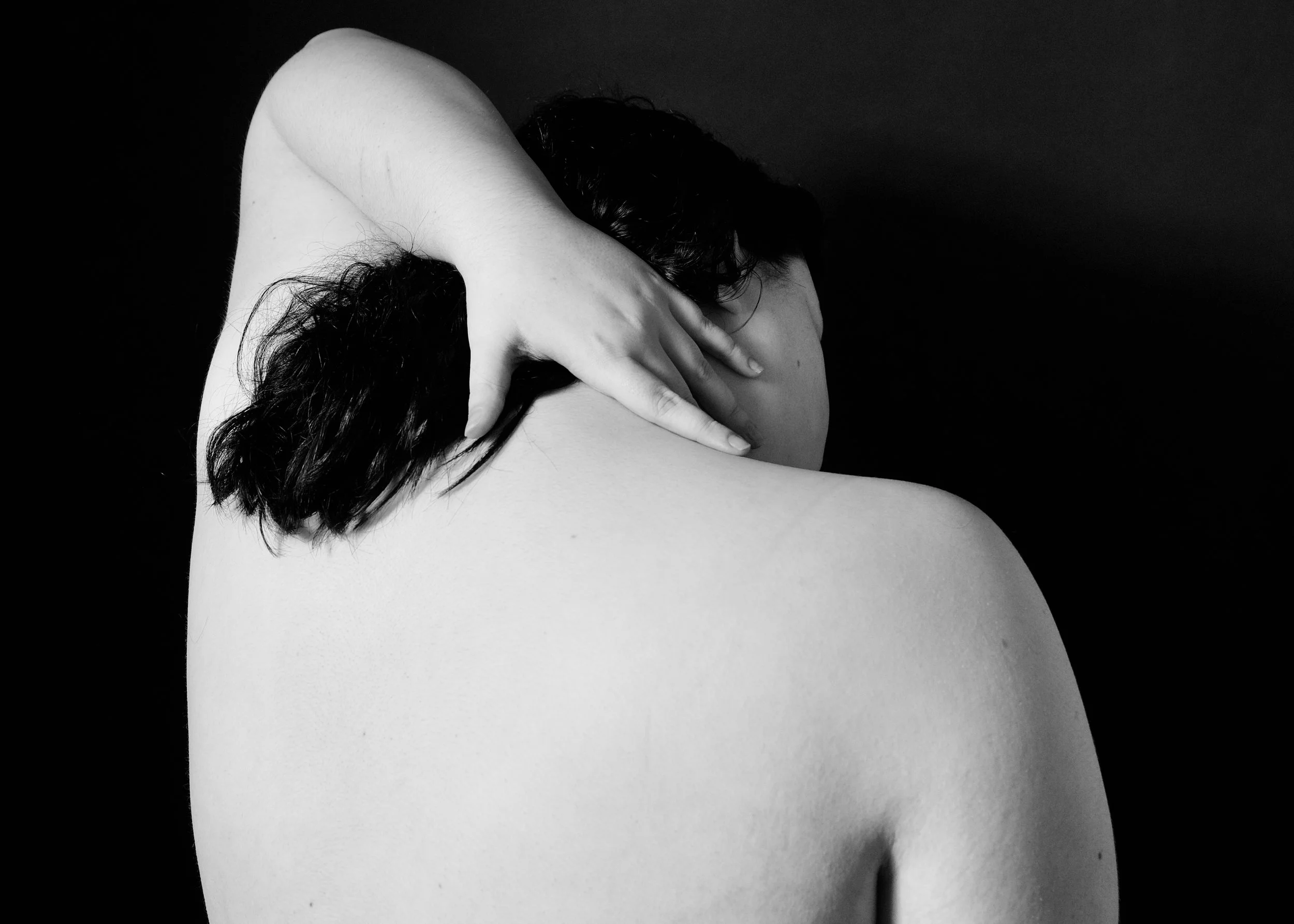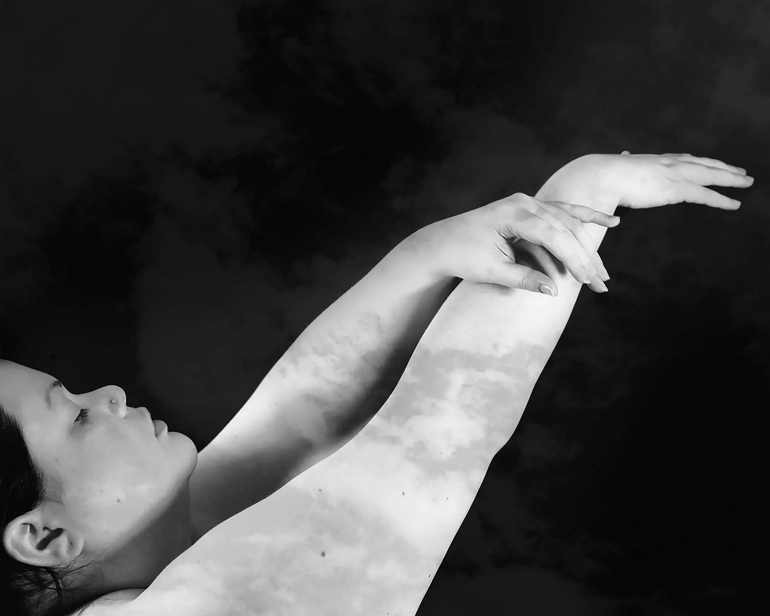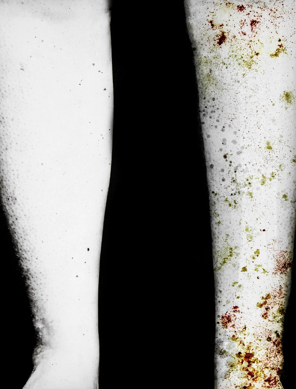I view the overexposed image of self as reflective of medical imaging and feelings of wanting sometimes to be seen in more detailed ways so that I am better understood. When the human form is broken into pieces, the work begins to reflect the detachment that occurs during a genetic disease when the body is working against itself.